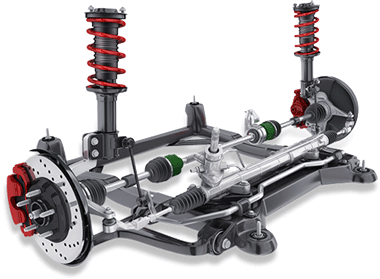 Cambio de amortiguadores (delanteros y traseros), cambio de resortes (delanteros y traseros), cambio de cacahuates y rotulas, cambio de horquillas y terminales, cambio de bieletas y bujes de horquillas, cambio de trompa de cochino y bases de amortiguador, cambio de balero doble (delantero y trasero), cambio de masa y mango, cambio de barra estabilizadora y bujes, cambios de cubre polvo, cambio de caja de dirección, cambio de bomba de dirección, cambio de aceite y flechas de diferencial, cambio del conjunto de diferencial, cambio de crucetas de flecha, cambio de diferencial, cambio de sensor de ABS, cambio de birlo.
